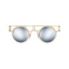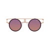 クラシカルなラウンド型リムが特徴のサングラス。個性的なデザインは、まるでジャングルジムのような遊び心あふれるフレーム構造を持ち、ファッションセンスにアクセントを加えます。軽量で快適な掛け心地を実現しており、ユニークなスタイルで自分らしさを表現したいあなたに最適です。