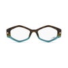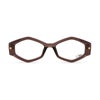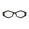 シャープなフォックス調のフレームに、多角形のレンズシェイプを組み合わせたインパクトのあるデザイン。エッジの効いた印象とは裏腹に柔らかさが感じられる曲線で立体的にカッティングされており直線と曲線が絶妙なバランスで融合されています。ボリュームのあるフロントデザインに、テンプルは細身でスマートな仕上がりに。掛け心地にも配慮された設計で、スタイルと快適さを兼ね備えた一本です。